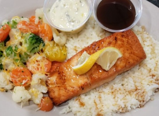Order online for dine in and takeout: Bourbon Glazed Salmon from ROAD TRIP FOOD & SPIRITS. Serving the best burgers, wings, pizza, fish, chicken, appetizers in Kaukauna, WI.